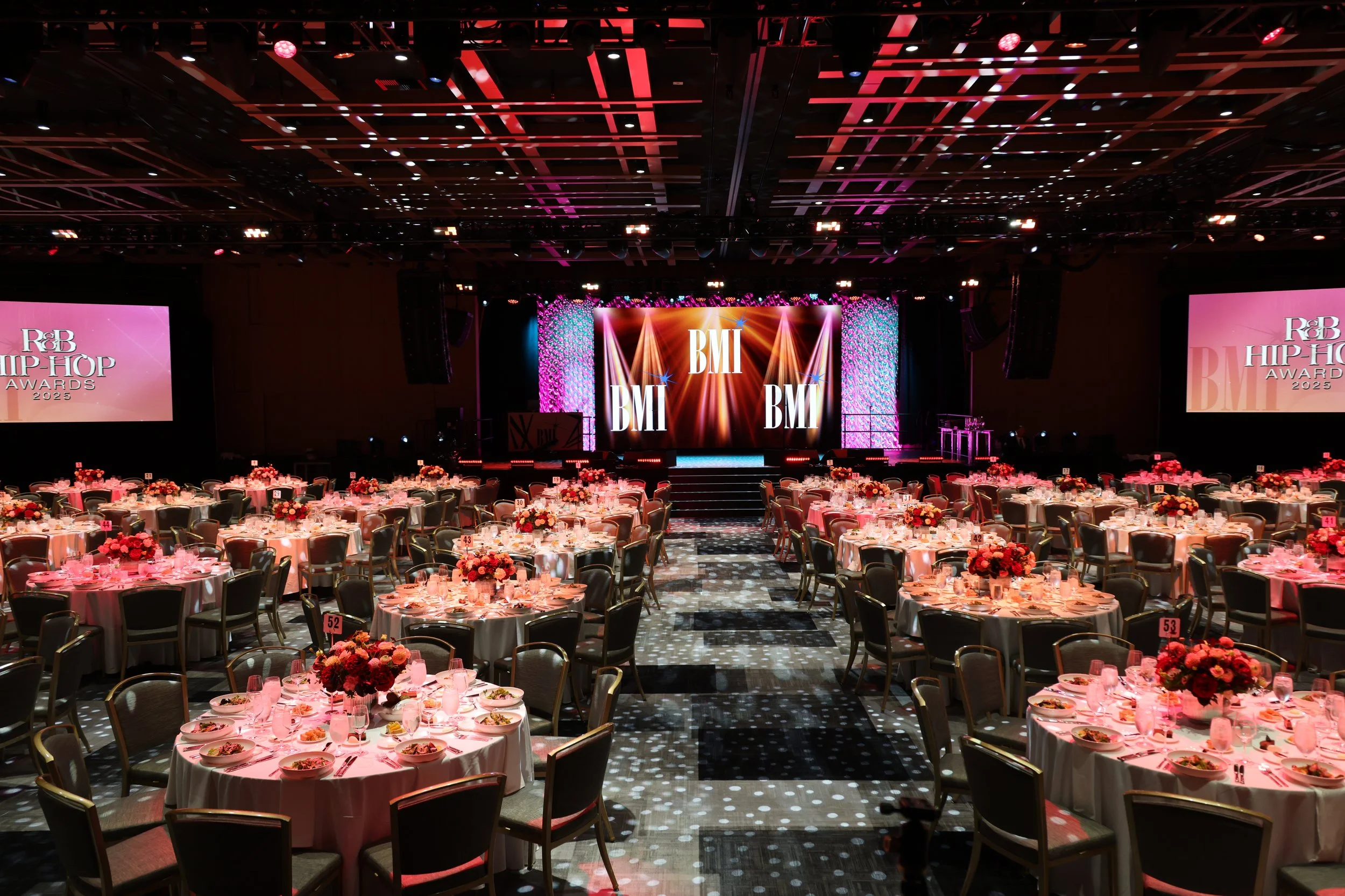 Every year, BMI hosts 10 awards shows for the different genres of affiliates we represent: Latin, Pop, Film & TV, Christian, Country, R&B/Hip-Hop, Troubadour, Trailblazer (gospel). Composer and London Awards (for our affiliates in the UK!). I produce all of our materials for these awards shows, making everything from step & repeats & GOBOs to laminates, bar menus & table cards.